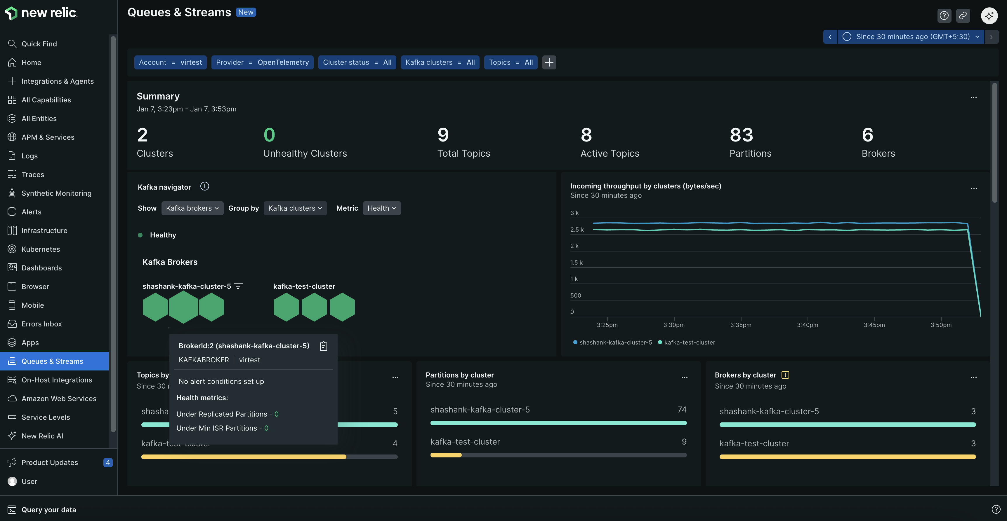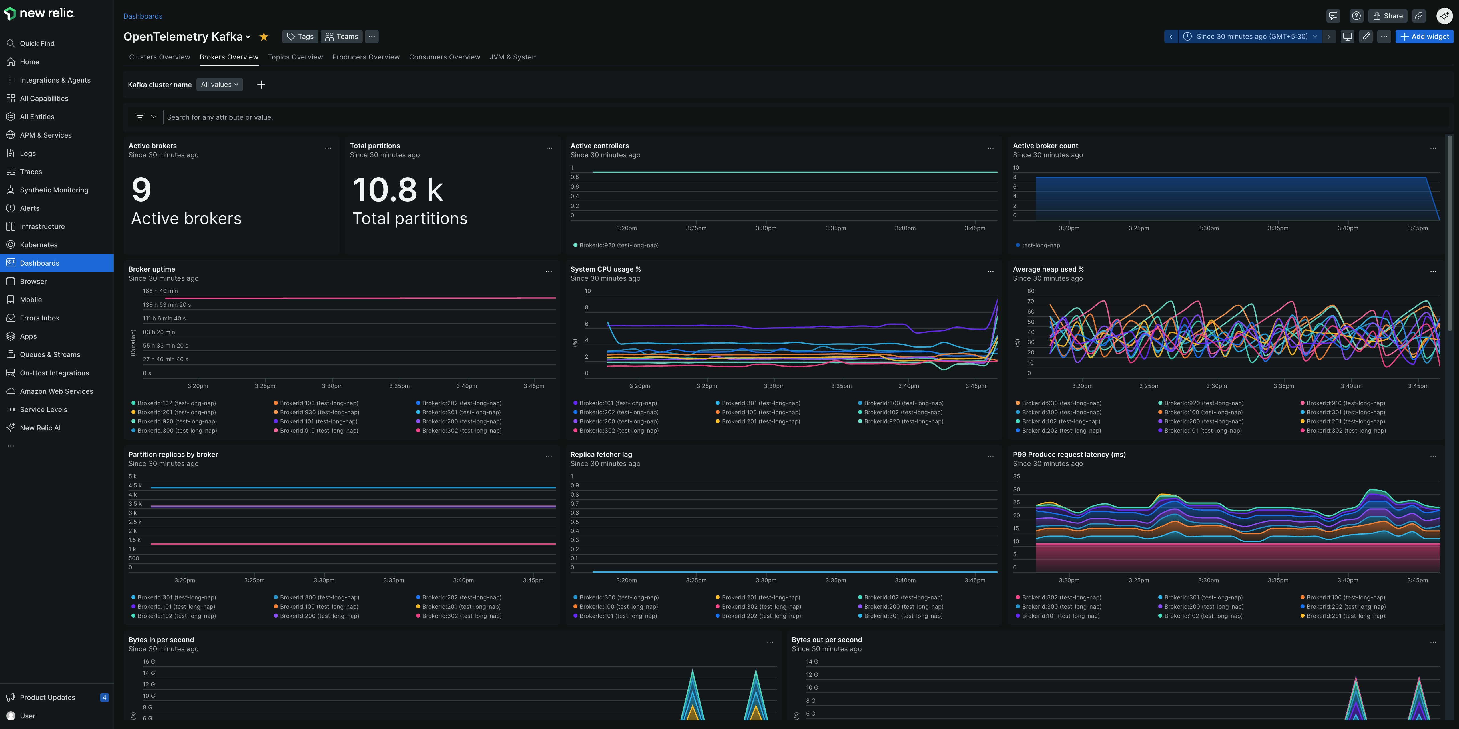 Once your Kafka monitoring is configured with OpenTelemetry, your metrics will appear across multiple locations in New Relic. This guide shows you where to find your data and how to query it effectively.